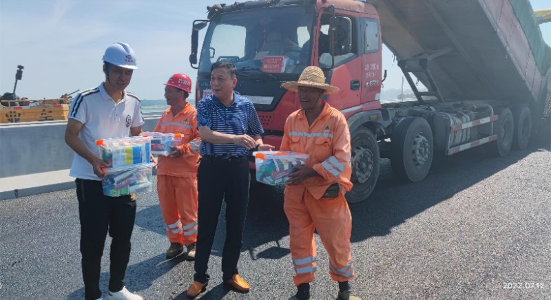 近日持續(xù)高溫、烈日炎炎,S325六安馬頭至長集段新建工程奮戰(zhàn)正酣。項(xiàng)目建設(shè)單位領(lǐng)導(dǎo)關(guān)心一線施工人員的身心健康,7月12日上午,市交通運(yùn)輸局黨組成員、總工程師程本文等一行到S325項(xiàng)目開展“夏日送清涼”慰問活動(dòng),給奮戰(zhàn)在高溫一線的施工人員送來防暑降溫用品,為炎炎夏日下的施工人員帶來一絲“清涼”。