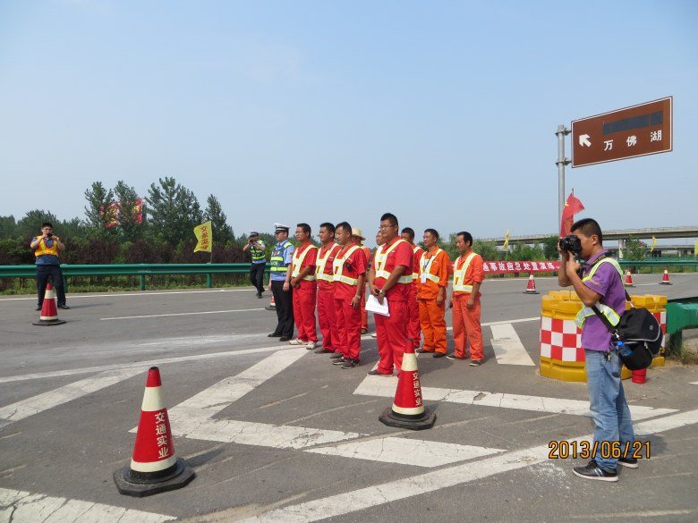 為進(jìn)一步提高公司應(yīng)急機(jī)制和處置水平, 2013年6月21下午3點(diǎn)在合六葉高速公路大顧店互通施工區(qū)域內(nèi)進(jìn)行了突發(fā)交通事故應(yīng)急演練活動(dòng)。公司領(lǐng)導(dǎo)、六安高速公路交警一大隊(duì)、合六葉高速公路路政大隊(duì)及高速公路六安管理公司的相關(guān)領(lǐng)導(dǎo)參加了演練活動(dòng)。